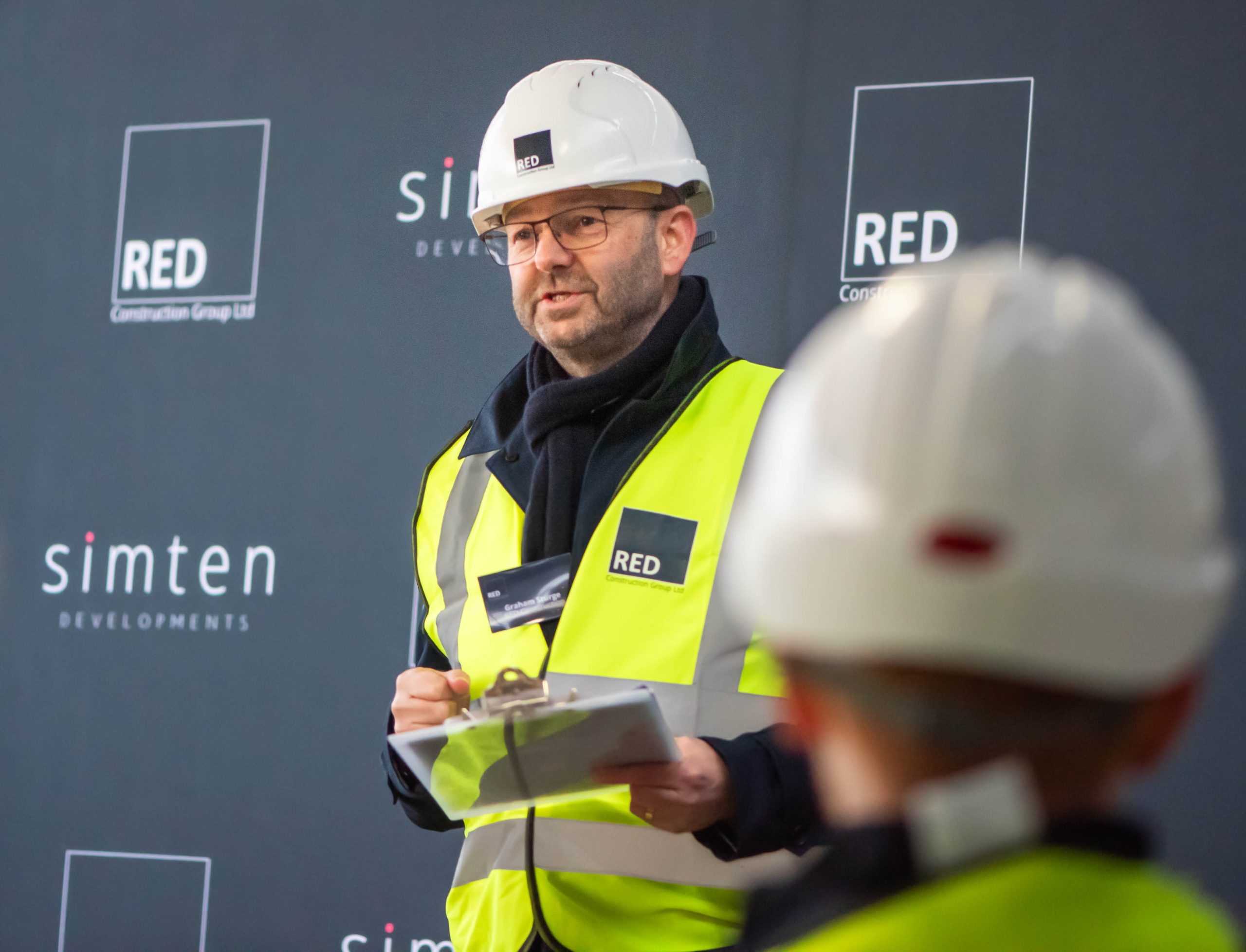 The event provided an opportunity to reflect on the hard work and collaboration that has gone into the project. Graham Sturge MCIOB, our CEO, was joined by Edward Sneddon from Simten and Christian Klersy from PKS Immobilien to acknowledge the dedication of the entire team. Their speeches highlighted the collective effort of all those involved, from the architects to the contractors, and their contribution to reaching this important stage.